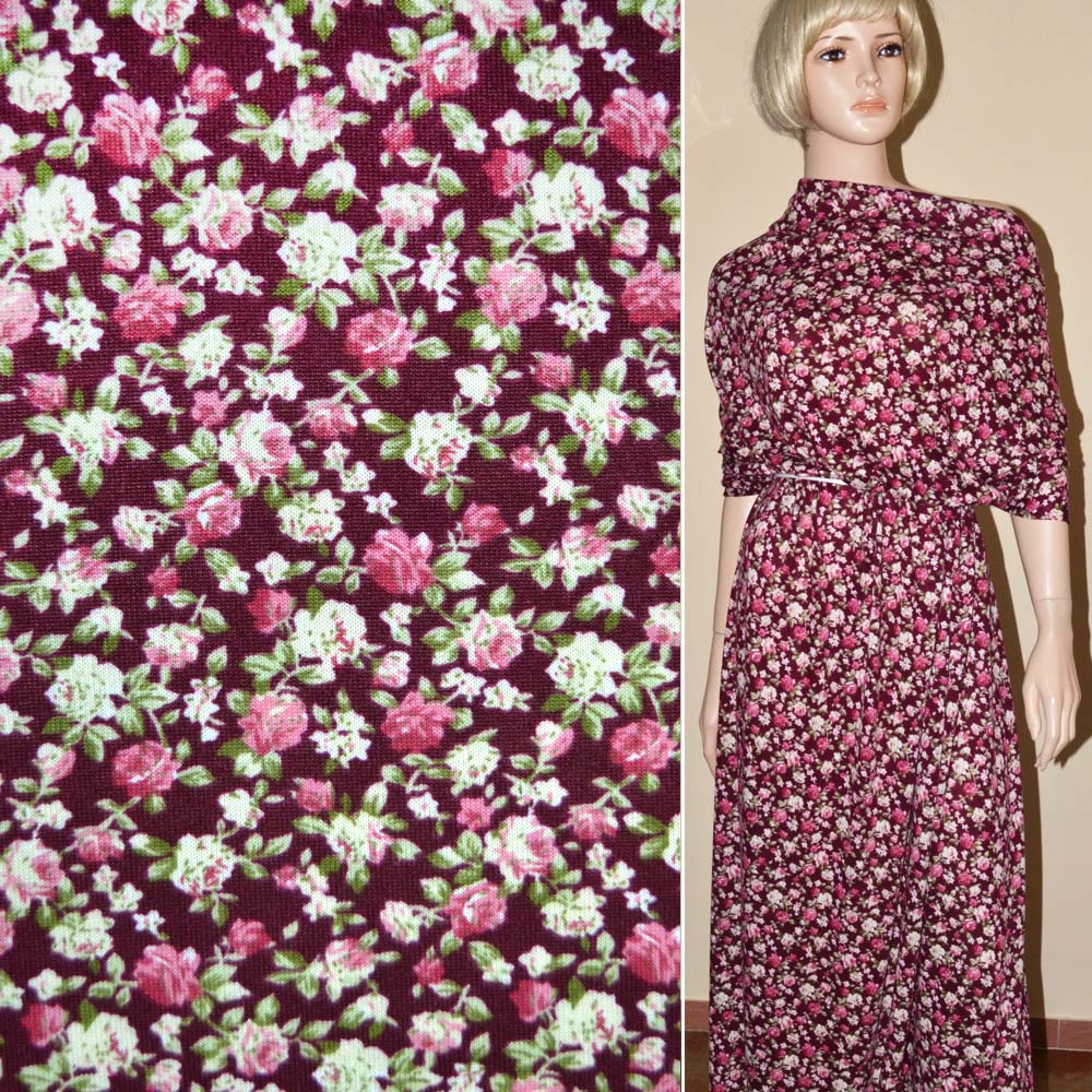Трикотаж бордовий з рожево-білими квітами ш.160 купить в розницу и оптом