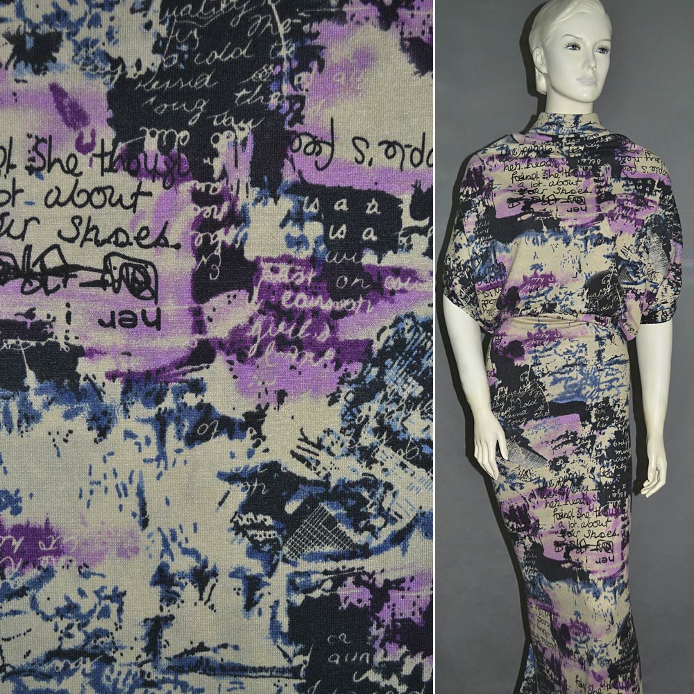 Трикотаж чорно-бежево-бузковий газета ш.160. Склад тканини: Поліакріл-85, Вовна-10, Еластан-5. Щільність тканини 186 г/м.кв. Країна виробник: Південна Корея. Трикотаж – це м'яка щільна матерія, не прозора. Приємна на дотик, комфортна в носінні. Завдяки вмісту синтетичних матерій, матеріал більш зносостійкий та надовго зберігає свій первісний вигляд. Тканина відрізняється своєю приємною текстурою, гарною розтяжністю, практично не помається, добре драпірується. Трикотаж досить простий у догляді. Використовується для пошиття суконь, спортивних костюмів, легких жакетів, поло, футболок та багато іншого.Дякуємо за ваш вибір.