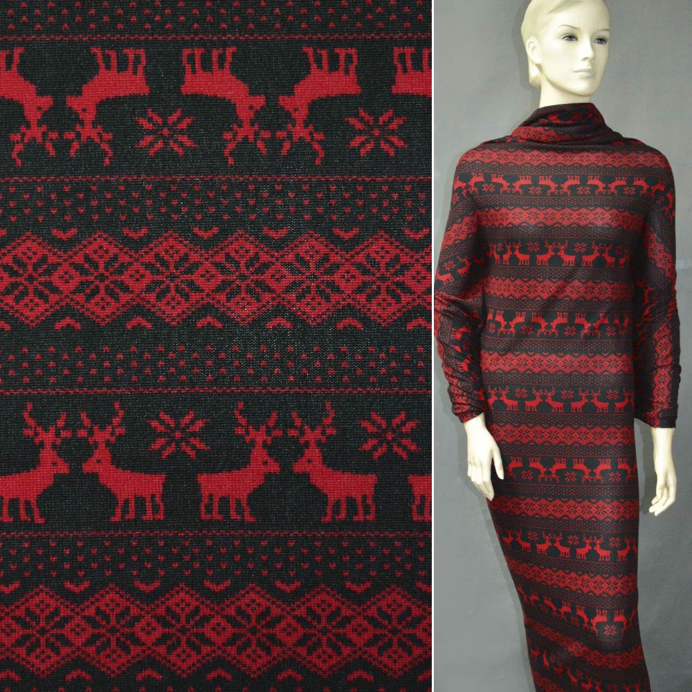 Трикотаж чорний з червоним орнаментом і оленями ш.170 купить в розницу и оптом