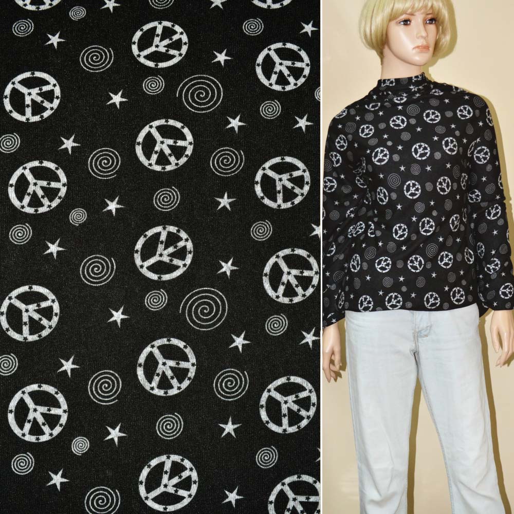 Трикотаж чорний в світло-сірі кола і зірки ш.165. Склад тканини: Поліакріл-85, Вовна-10, Еластан-5. Щільність тканини 186 г/м.кв. Країна виробник: Південна Корея. Трикотаж – це м'яка щільна матерія, не прозора. Приємна на дотик, комфортна в носінні. Завдяки вмісту синтетичних матерій, матеріал більш зносостійкий та надовго зберігає свій первісний вигляд. Тканина відрізняється своєю приємною текстурою, гарною розтяжністю, практично не помається, добре драпірується. Трикотаж досить простий у догляді. Використовується для пошиття суконь, спортивних костюмів, легких жакетів, поло, футболок та багато іншого.Дякуємо за ваш вибір.