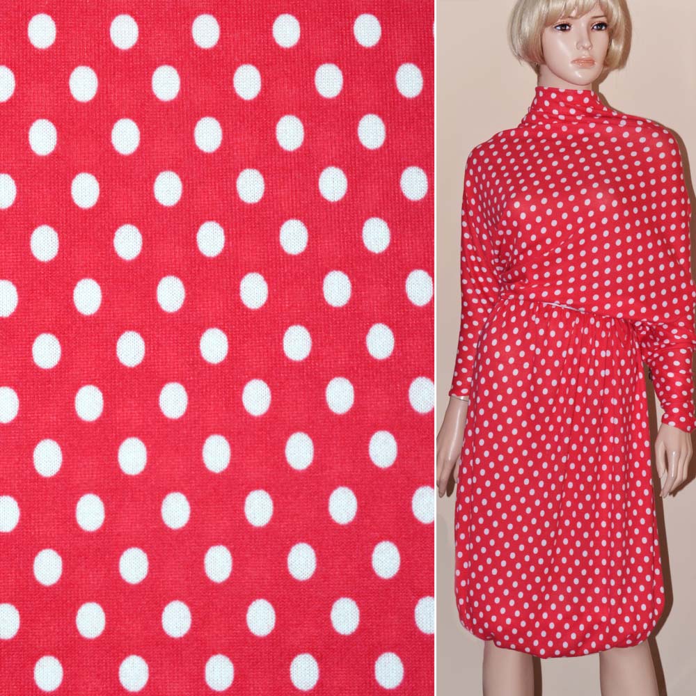 Трикотаж коралово-червоний в білий горох ш.170 купить в розницу и оптом