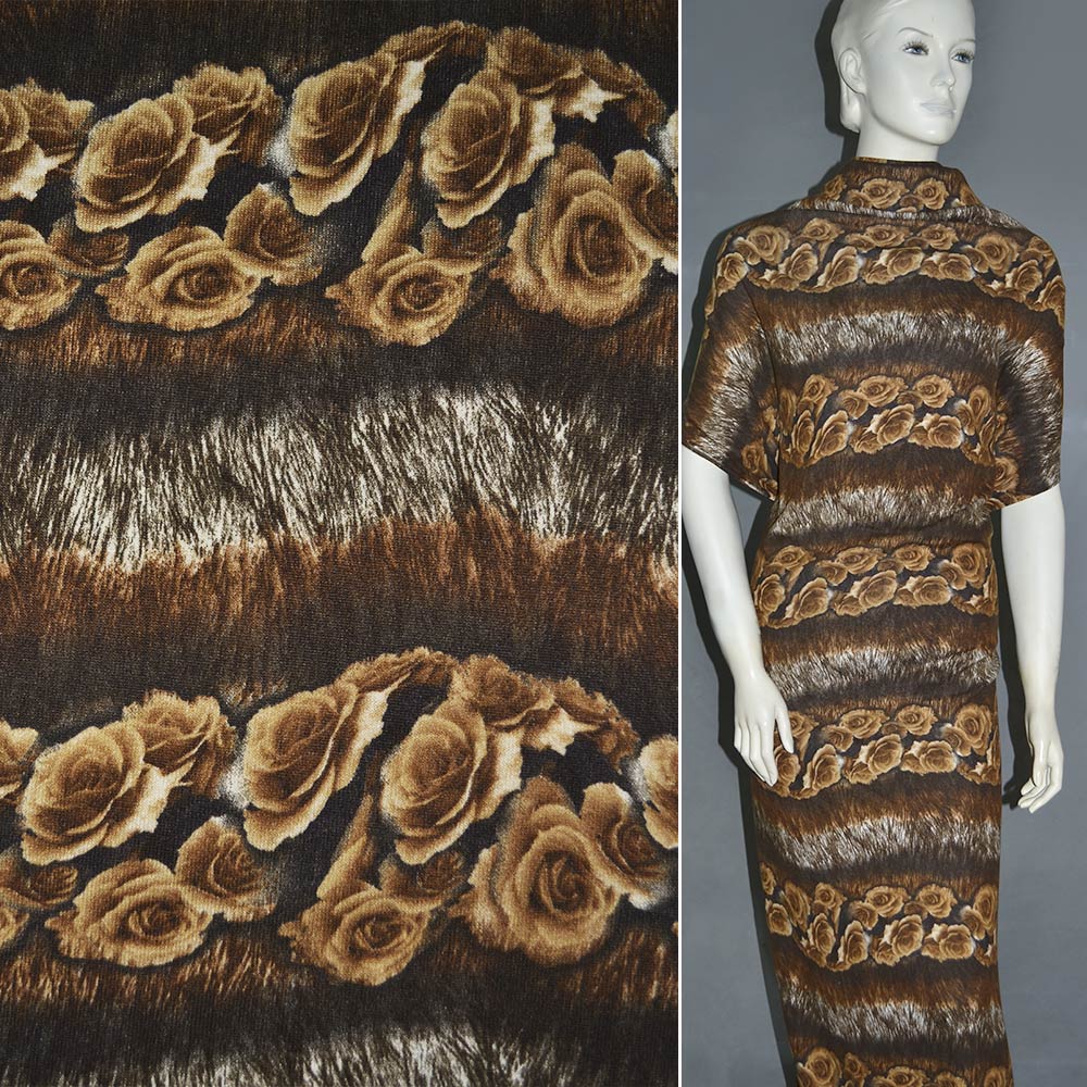 Трикотаж коричневий темний з шоколадними трояндами (раппорт) ш.160 купить в розницу и оптом