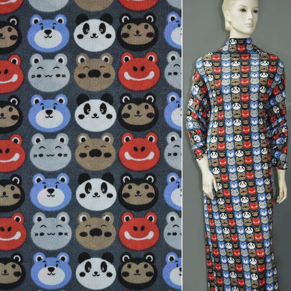 Трикотаж сірий з різнокольоровими мордочками ш.170. Склад тканини: Поліакріл-85, Вовна-10, Еластан-5. Щільність тканини 171 г/м.кв. Країна виробник: Південна Корея. Трикотаж – це м'яка щільна матерія, не прозора. Приємна на дотик, комфортна в носінні. Завдяки вмісту синтетичних матерій, матеріал більш зносостійкий та надовго зберігає свій первісний вигляд. Тканина відрізняється своєю приємною текстурою, гарною розтяжністю, практично не здається. Трикотаж досить простий у догляді. Використовується для пошиття суконь, спортивних костюмів, легких жакетів, поло, футболок та багато іншого.Дякуємо за ваш вибір.