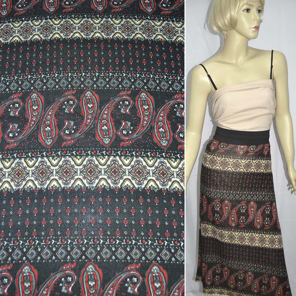 Трикотаж в чорно-бежеві смуги огірками ш.150. Склад тканини: Поліакріл-85, Вовна-10, Еластан-5. Щільність тканини 203 г/м.кв. Країна виробник: Південна Корея. Трикотаж – це м'яка щільна матерія, не прозора. Приємна на дотик, комфортна в носінні. Завдяки вмісту синтетичних матерій, матеріал більш зносостійкий та надовго зберігає свій первісний вигляд. Тканина відрізняється своєю приємною текстурою, гарною розтяжністю, практично не здається. Трикотаж досить простий у догляді. Використовується для пошиття суконь, спортивних костюмів, легких жакетів, поло, футболок та багато іншого.Дякуємо за ваш вибір.