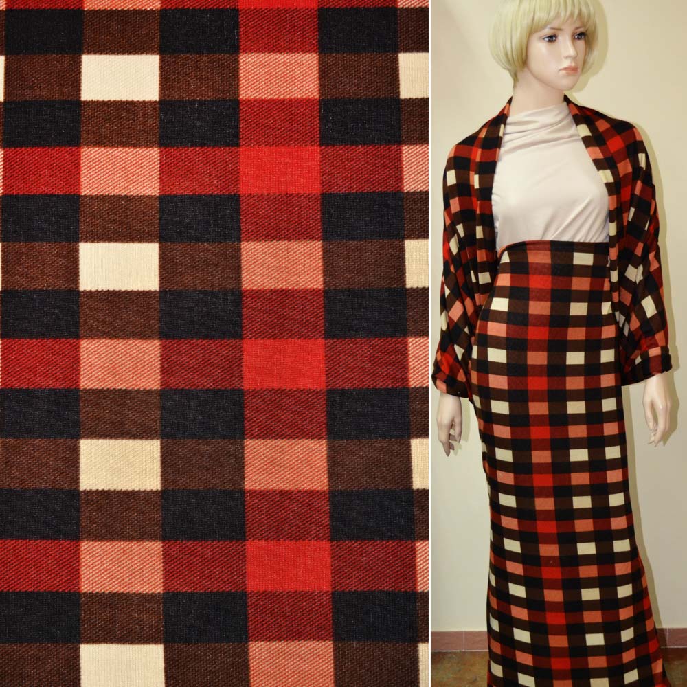 Трикотаж в коричнево-кремову і червоно-чорну клітинку ш.170 купить в розницу и оптом