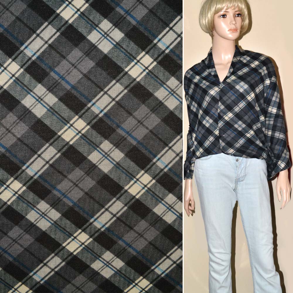 Трикотаж в сіро-чорно-бежеві ромби ш.165. Склад тканини: Поліакріл-85, Вовна-10, Еластан-5. Щільність тканини 174 г/м.кв. Країна виробник: Південна Корея. Трикотаж – це м'яка щільна матерія, не прозора. Приємна на дотик, комфортна в носінні. Завдяки вмісту синтетичних матерій, матеріал більш зносостійкий та надовго зберігає свій первісний вигляд. Тканина відрізняється своєю приємною текстурою, гарною розтяжністю, практично не здається. Трикотаж досить простий у догляді. Використовується для пошиття суконь, спортивних костюмів, легких жакетів, поло, футболок та багато іншого.Дякуємо за ваш вибір.