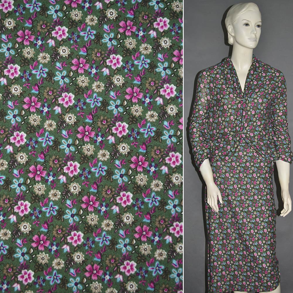Трикотаж зелений з рожево-блакитними квітами ш.160. Склад тканини: Поліакріл-85, Вовна-10, Еластан-5. Щільність тканини 171 г/м.кв. Країна виробник: Південна Корея. Трикотаж – це м'яка щільна матерія, не прозора. Приємна на дотик, комфортна в носінні. Завдяки вмісту синтетичних матерій, матеріал більш зносостійкий та надовго зберігає свій первісний вигляд. Тканина відрізняється своєю приємною текстурою, гарною розтяжністю, практично не здається. Трикотаж досить простий у догляді. Використовується для пошиття суконь, спортивних костюмів, легких жакетів, поло, футболок та багато іншого.Дякуємо за ваш вибір.