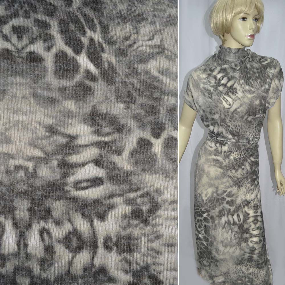 Трикотаж з шерстю бежево-сірий принт леопард ш.145 купить в розницу и оптом