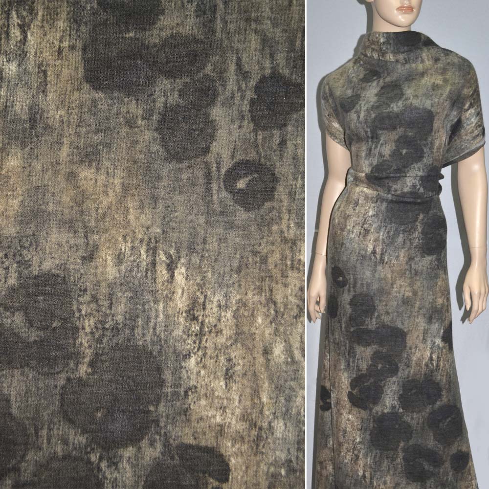 Трикотаж з шерстю бежево-сірий в чорні плями ш.143 купить в розницу и оптом