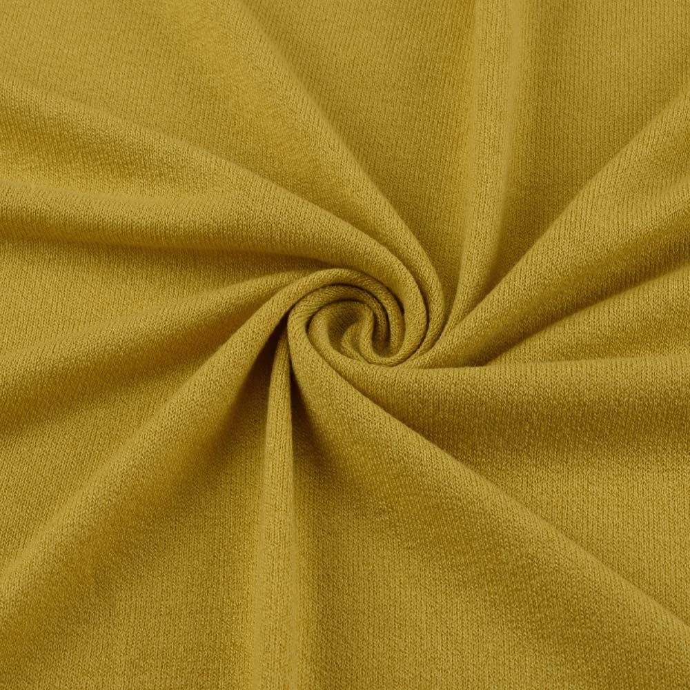 Трикотаж з віскозою жовто-гірчичний (відтінок) ш.170. Склад тканини: Віскоза-60, Поліакріл-35, Еластан-5. Щільність тканини 233 г/м.кв. Країна виробник: Південна Корея. Трикотаж – це м'яка щільна матерія, не прозора. Приємна на дотик, комфортна в носінні. Завдяки вмісту синтетичних матерій, матеріал більш зносостійкий та надовго зберігає свій первісний вигляд. Тканина відрізняється своєю приємною текстурою, гарною розтяжністю, практично не здається. Трикотаж досить простий у догляді. Використовується для пошиття суконь, спортивних костюмів, легких жакетів, поло, футболок та багато іншого.Дякуємо за ваш вибір.