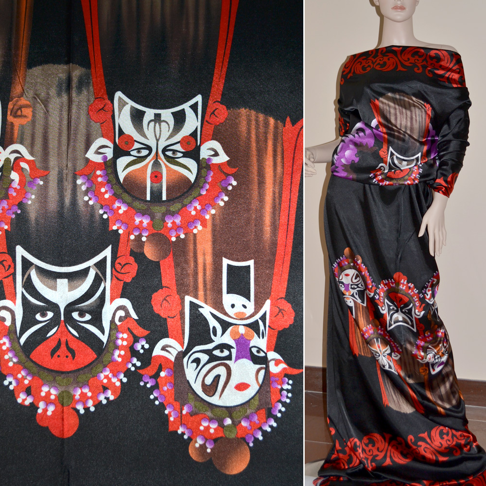 Атлас стрейч чорний з червоним раппорт маски ш.120 купить в розницу и оптом
