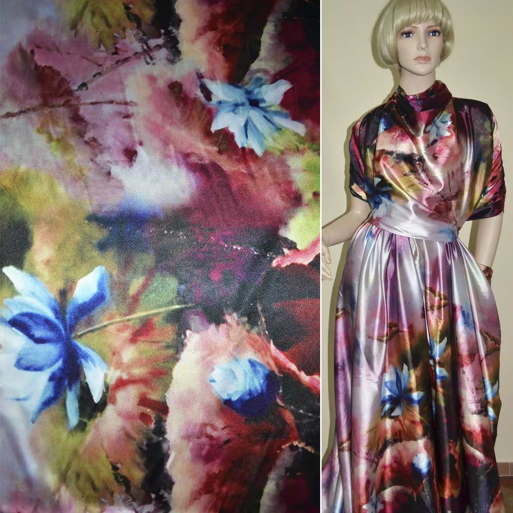 Атлас стрейч сріблясто-рожевий, двосторонній купон розмиті квіти ш.170. Склад тканини: Поліестер-97, Еластан-3. Щільність тканини 103 г/м.кв. Країна виробник: Південна Корея. Вироби, виконані з атласу - будь то одяг або предмети інтер'єру - завжди виглядають гідно і радують око. Це щільна міцна тканина з шовковим благородним блиском. Має дві сторони – гладку лицьову та матову виворітну. Атлас має безліч переваг, такі як гігроскопічність, міцність, хороше драпірування, повітропроникність. Відмінно поєднується з органзою, оксамитом, шифоном, мереживом.Дякуємо за ваш вибір.