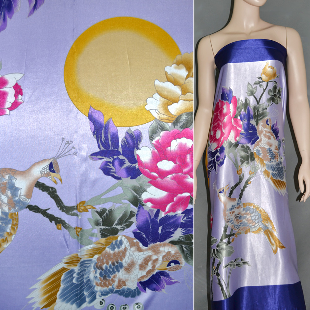 Атлас стрейч світло-фіолетовий з синім раппорт папуга ш.120 купить в розницу и оптом