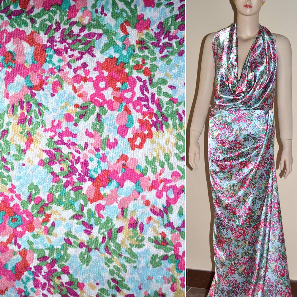Атлас стрейч блідо-блакитний зелений рожевий калейдоскоп ш.120 купить в розницу и оптом