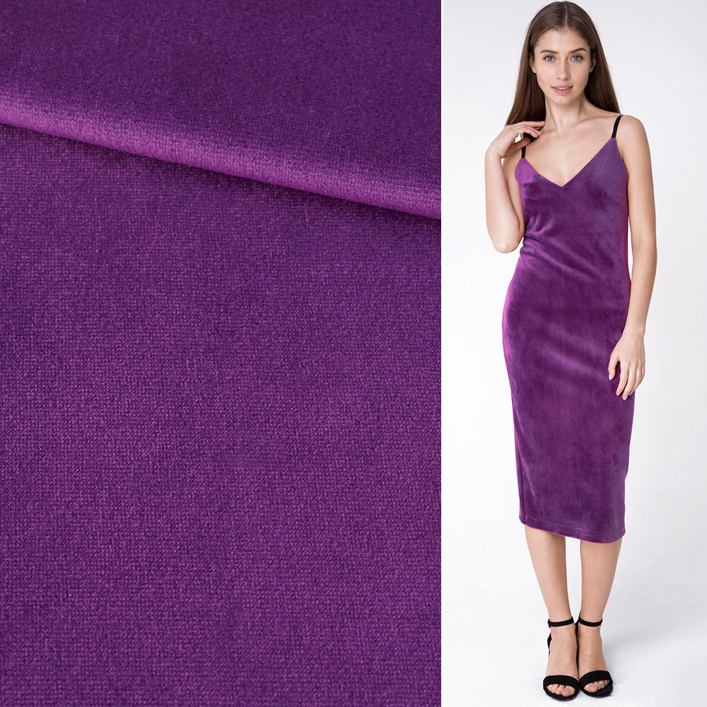 Велюр костюмний фіолетовий ш.152. Склад тканини: Поліестер-97, Еластан-3. Щільність тканини 248 г/м.кв. Країна виробник: Південна Корея. Даний велюр - тканина високої якості, він має гладке виворот і фактурне оксамитове лицьове покриття. Вміст поліестеру робить його ідеальним для прання, хоча ми радимо дотримуватися додаткового догляду, наприклад, ручного прання цієї тканини, щоб зберегти високу якість виробу. Цей розкішний м'який оксамит, який не залишить Вас байдужим. Тканина чудово підходить для такого одягу, як сукні, жакети та штани, а також костюми, для декоративних цілей. Ця тканина також ідеально підходить для різноманітних творчих проектів.Дякуємо за ваш вибір.