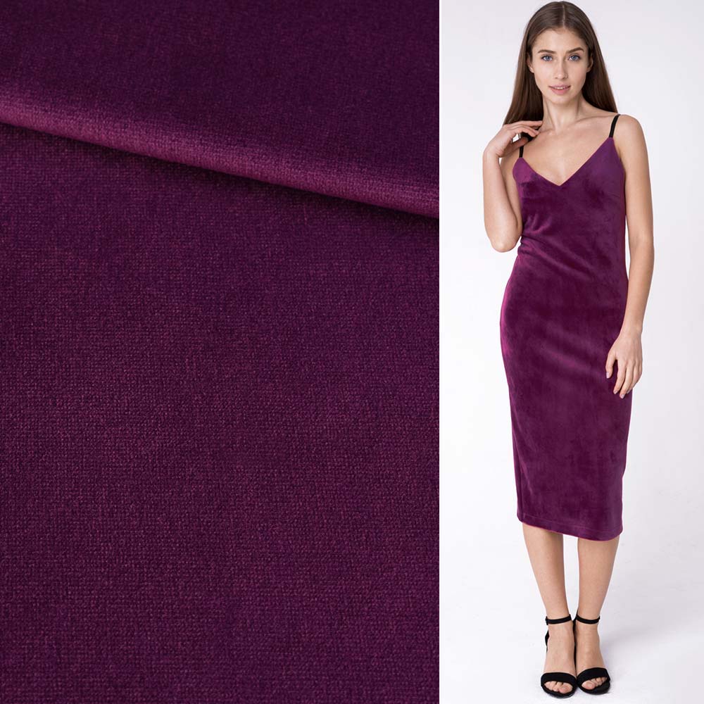 Велюр костюмний бузковий темний ш.150. Склад тканини: Поліестер-97, Еластан-3. Щільність тканини 236 г/м.кв. Країна виробник: Південна Корея. Даний велюр - тканина високої якості, він має гладке виворот і фактурне оксамитове лицьове покриття. Вміст поліестеру робить його ідеальним для прання, хоча ми радимо дотримуватися додаткового догляду, наприклад, ручного прання цієї тканини, щоб зберегти високу якість виробу. Цей розкішний м'який оксамит, який не залишить Вас байдужим. Тканина чудово підходить для такого одягу, як сукні, жакети та штани, а також костюми, для декоративних цілей. Ця тканина також ідеально підходить для різноманітних творчих проектів.Дякуємо за ваш вибір.