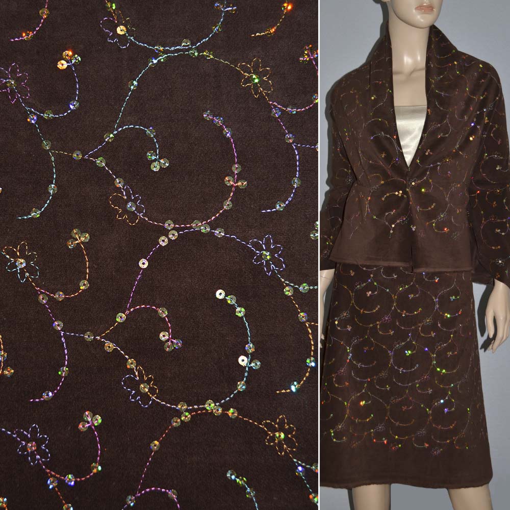 Оксамит стрейч коричневий темний з паєтками, ш. 144 купить в розницу и оптом