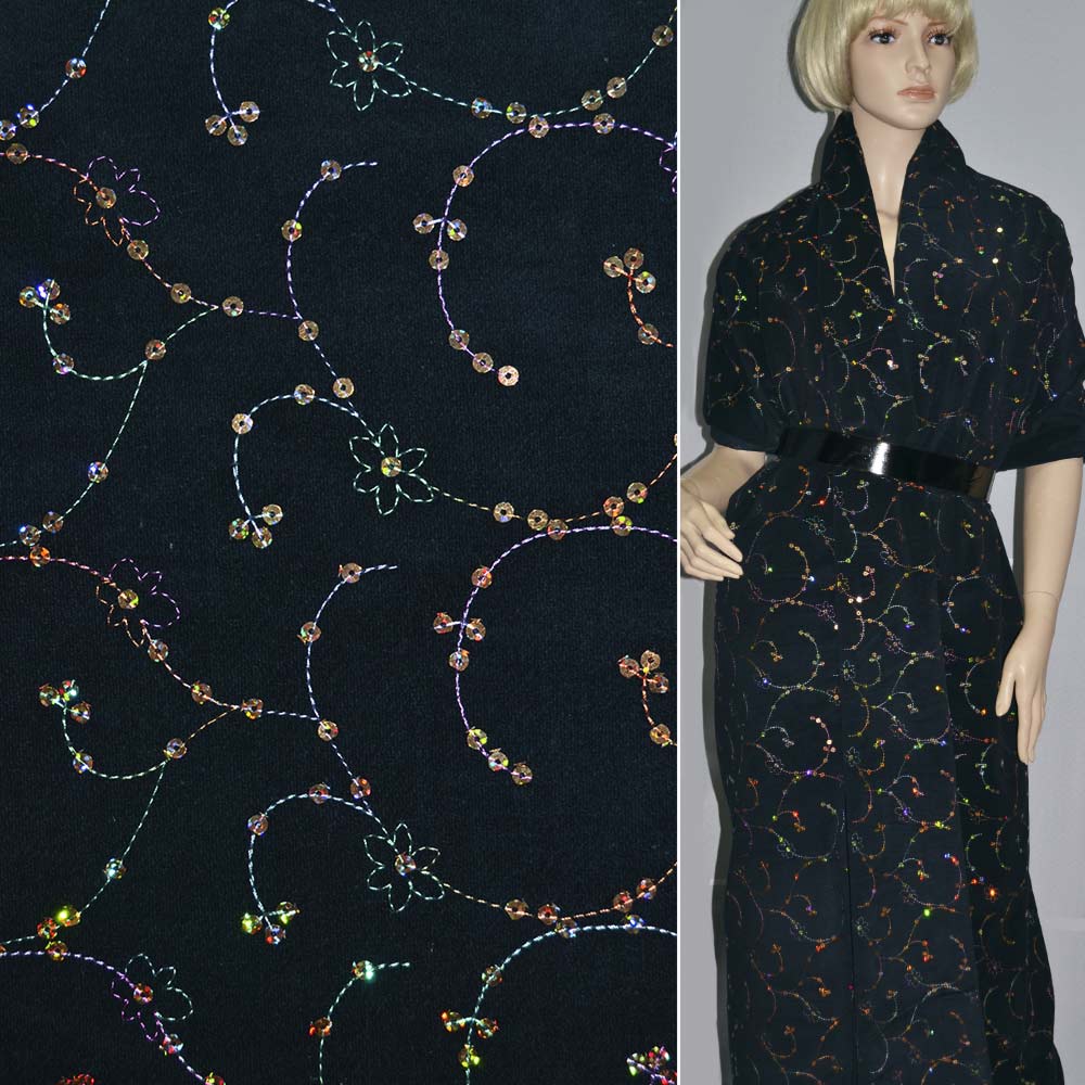 Оксамит стрейч синій з паєтками, ш.145. Склад тканини: Бавовна-95, Еластан-5. Щільність тканини 305 г/м.кв. Країна виробник: Південна Корея. Це міцна тканина, стійка до механічних дій, має хорошу теплоізоляцію. Велюр шкарпетка, не піддається будь-яким деформаціям і змінам у процесі носіння та прання. Відмінно пропускає повітря, не втрачає гарний зовнішній вигляд та форму. Одяг з велюру не потрібно гладити, оскільки тканина не помається. Широко використовується для пошиття одягу як для дорослих, так і на дітей, для обтяжування меблів, оформлення інтер'єру, для штор для пошиття бальних суконь, що надає багатий вигляд.Дякуємо за ваш вибір.