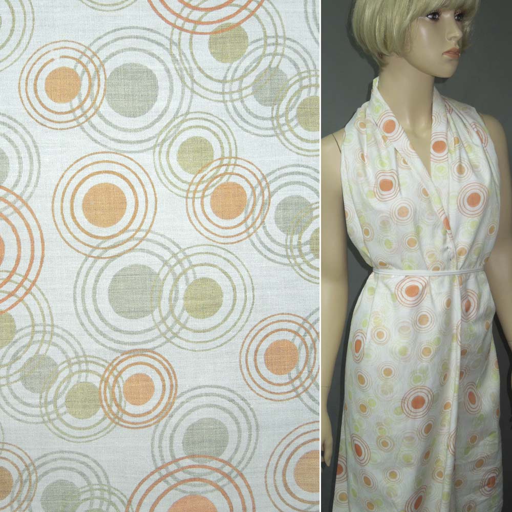 Батист білий в оранжево-зелені кола ш.150 купить в розницу и оптом