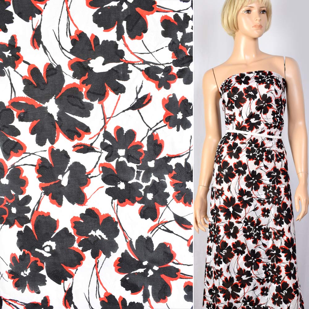 Батист деворе білий в чорно-червоні квіти, ш.140 купить в розницу и оптом