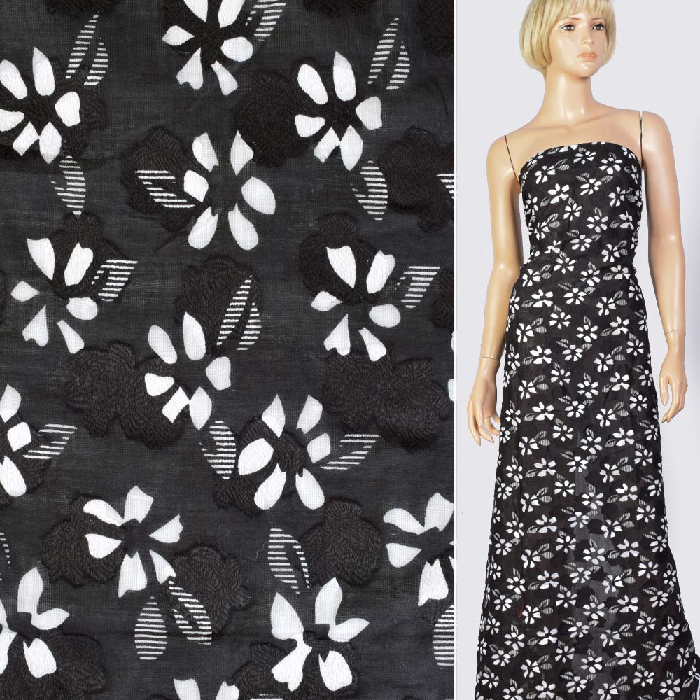 Батист деворе чорний в білі квіти, ш.140 купить в розницу и оптом