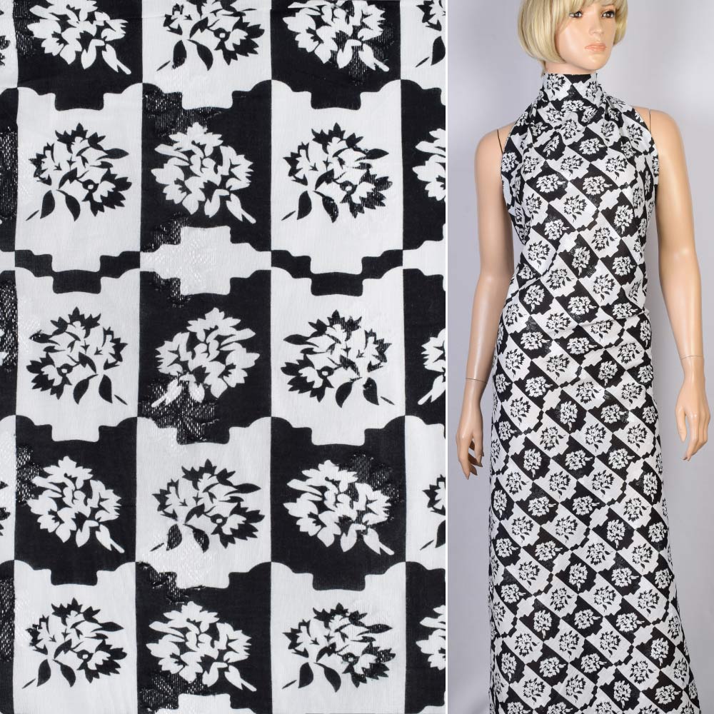 Батист деворе з метаниткою чорно-біла клітина з квітами ш.142 купить в розницу и оптом