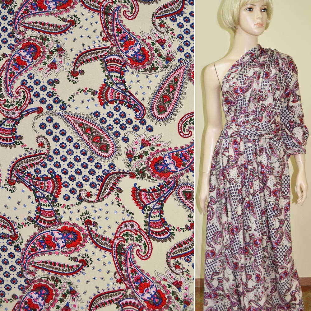 Батист Діллон бежквий з рожево-червоними огірками і дрібними квітами ш.140. Склад тканини: Віскоза-40, Бавовна-60. Щільність тканини 101 г/м.кв. Країна виробник: Південна Корея. Батист - тканина, яка відрізняється вишуканістю, витонченістю. Будучи легким та пластичним, матеріал у той же час міцний. Є чудовою заміною шифону з шовку, який складний і примхливий у шитті. У спекотний час в одязі з батиста буде комфортно, оскільки тканина має відмінну повітропроникність. Тканина приємна при носінні, не викликає подразнення та алергії. При виготовленні тканини застосовується особливе переплетення ниток качка та основи, тому при розкрої та пошитті краї тканини не обсипаються.