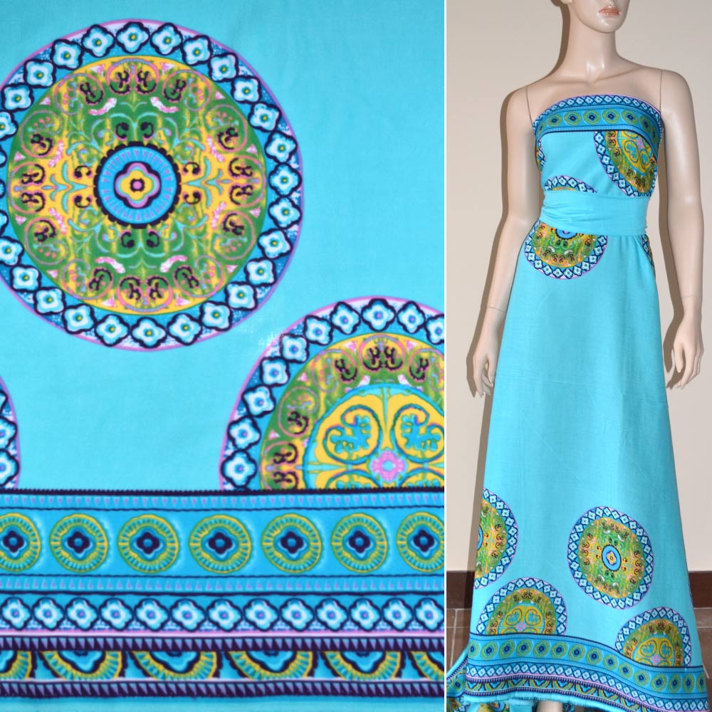 Батист Діллон бірюзовий світлий, двосторонній купон жовто-зелені кола ш.140. Склад тканини: Віскоза-40, Бавовна-60. Щільність тканини 99 г/м.кв. Країна виробник: Південна Корея. Батист ділон бірюзовий світлий, двосторонній купон жовто-зелені круги. Тканина батист є однією із затребуваних літніх тканин, оскільки вона легка, дихаюча, повітряна та гіпоалергенна. Прекрасно підходить для пошиття таких виробів як весільні вбрання, сукні, сарафани, спідниці, сорочки, блузки. У спекотний час в одязі з батиста буде комфортно, оскільки тканина має відмінну повітропроникність. Тканина приємна при носінні, не викликає подразнення та алергії.