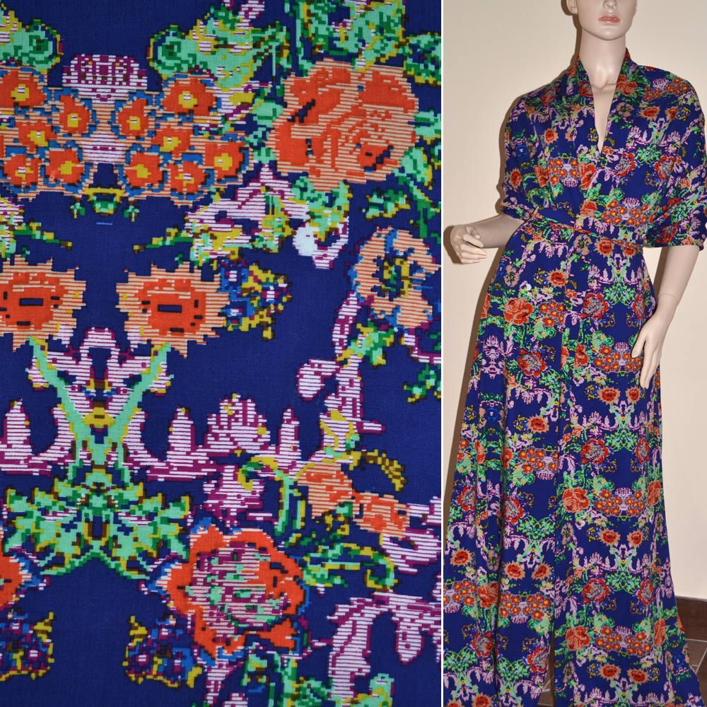 Батист Діллон синій з помаранчевими зеленими графічними квітами ш.140 купить в розницу и оптом