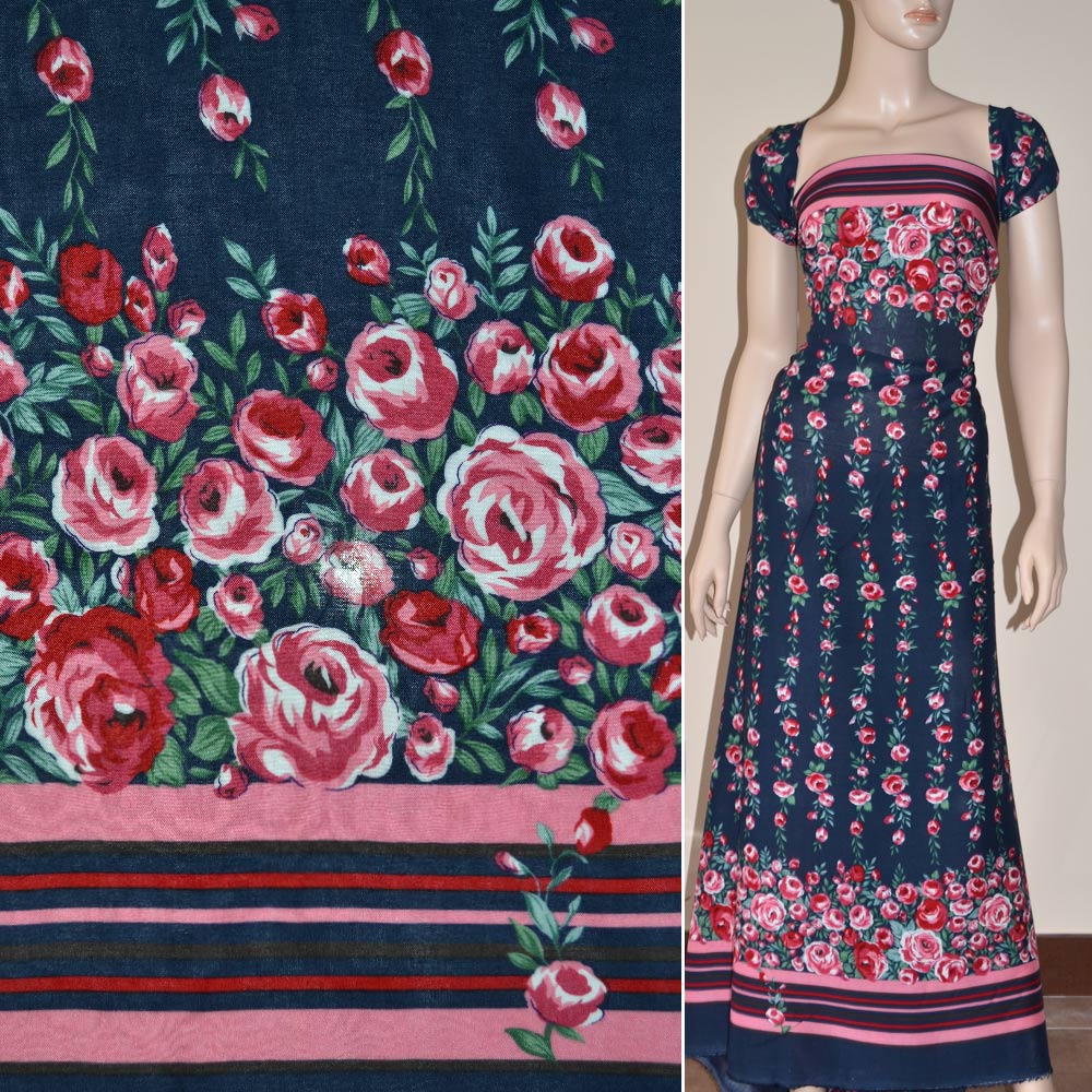Батист Діллон синій, двосторонній купон рожево-вишневі квіти і смужки ш.140 купить в розницу и оптом