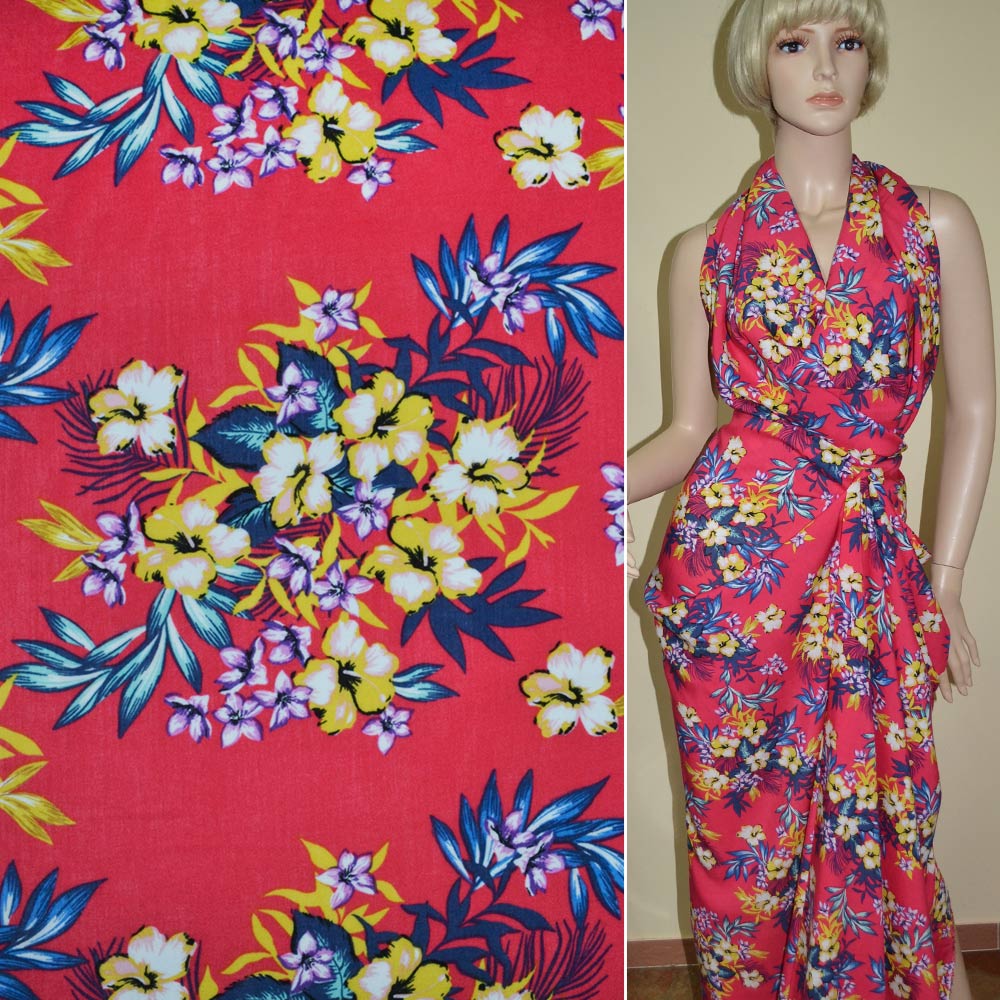 Батист Діллон яскраво-рожевий з жовто-синіми квітами ш.142 купить в розницу и оптом