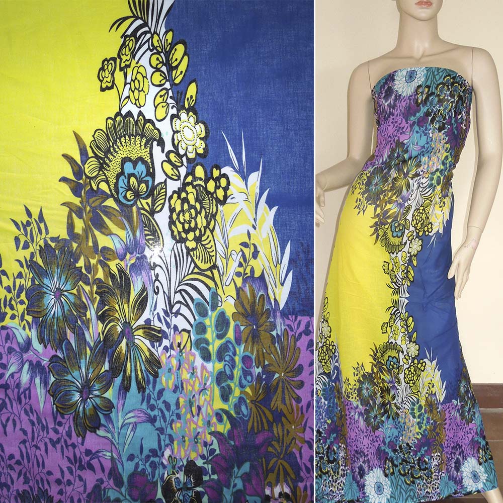 Батист бирюзово-жовтий, двосторонній купон в квіти ш.140 купить в розницу и оптом