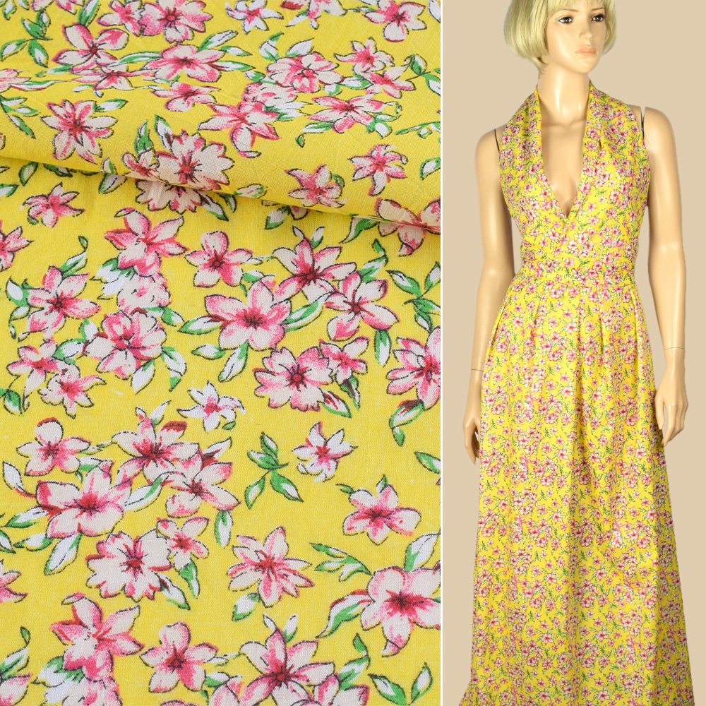 Батист жовтий в біло-рожеві квіти, ш.140 купить в розницу и оптом