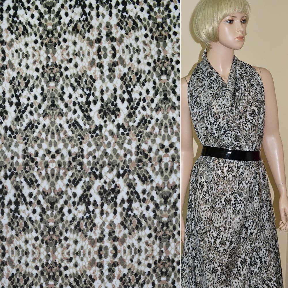 Батист молочний з органзой, чорно-сірим малюнком принт рептилія ш.142 купить в розницу и оптом