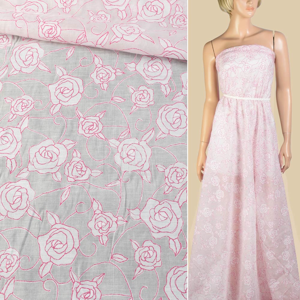 Батист з органзой білий з рожевими трояндами ш.145 купить в розницу и оптом