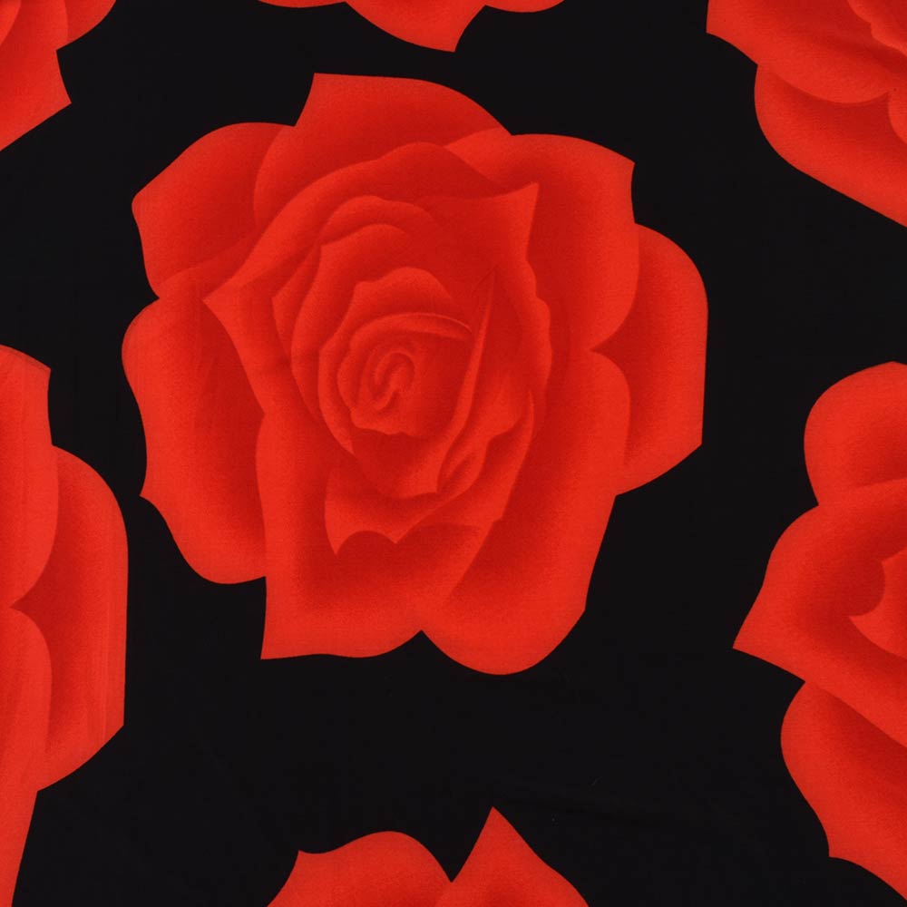 Мікролайкра чорна з трояндами червоними ш.150. Склад тканини: Поліамід-50, Поліестер-50. Щільність тканини 193 г/м.кв. Країна виробник: Південна Корея. Мікролайкра – тканина з дуже високою еластичністю. Полотно легке, м'яке, приємне навпомацки, досить тонке, але при цьому щільне і не прозоре. Легко розтягується і швидко повертається до попередньої форми. Матеріал стійкий до забруднень і легко відмивається. Мікролайкра не меніться, добре драпірується, лягає м'якими складками. Тканина зносостійка, повітропроникна.