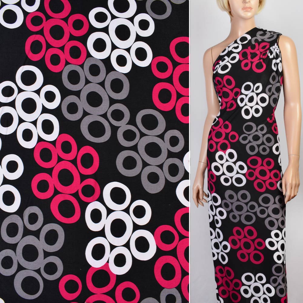 Мікролайкра чорна в кільця білі, сірі, малинові ш.160 купить в розницу и оптом