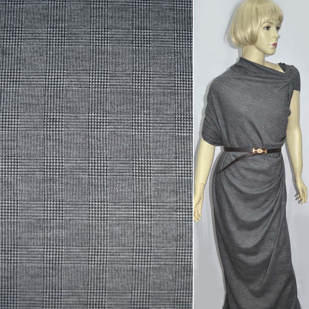 Трикотаж віскозний джерсі стрейч в клітину сіре ш.130 купить в розницу и оптом