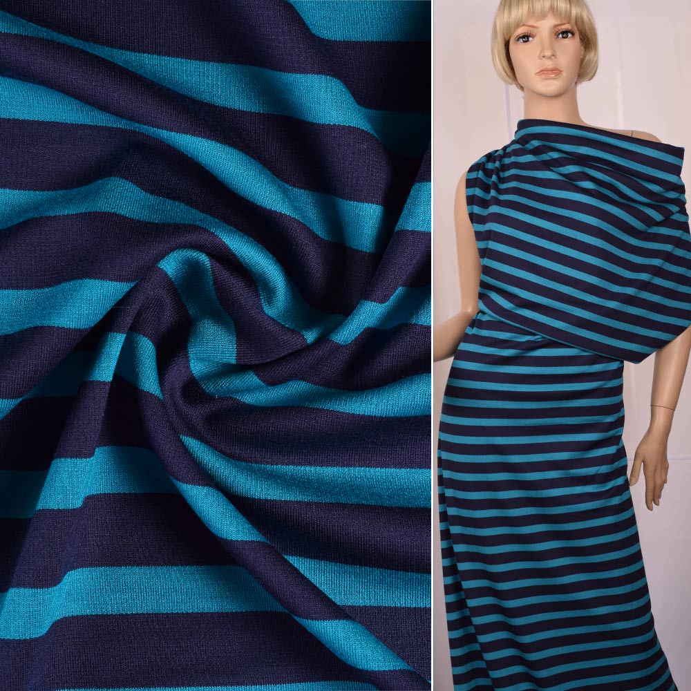 Трикотаж французький віскозний в бірюзову і темно-синю смугу ш.148 купить в розницу и оптом