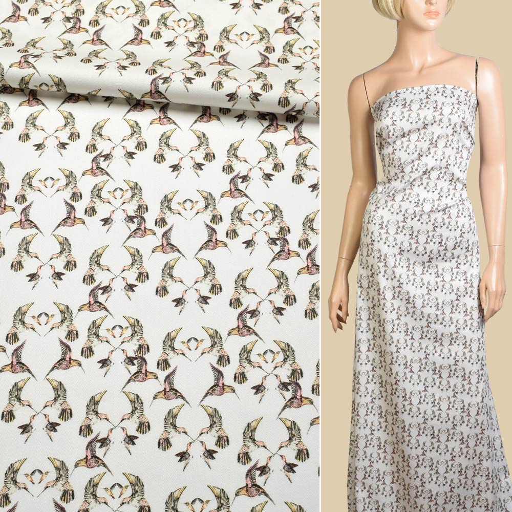 Котон стрейч білий в рожево-зелені колібрі ш.148 купить в розницу и оптом