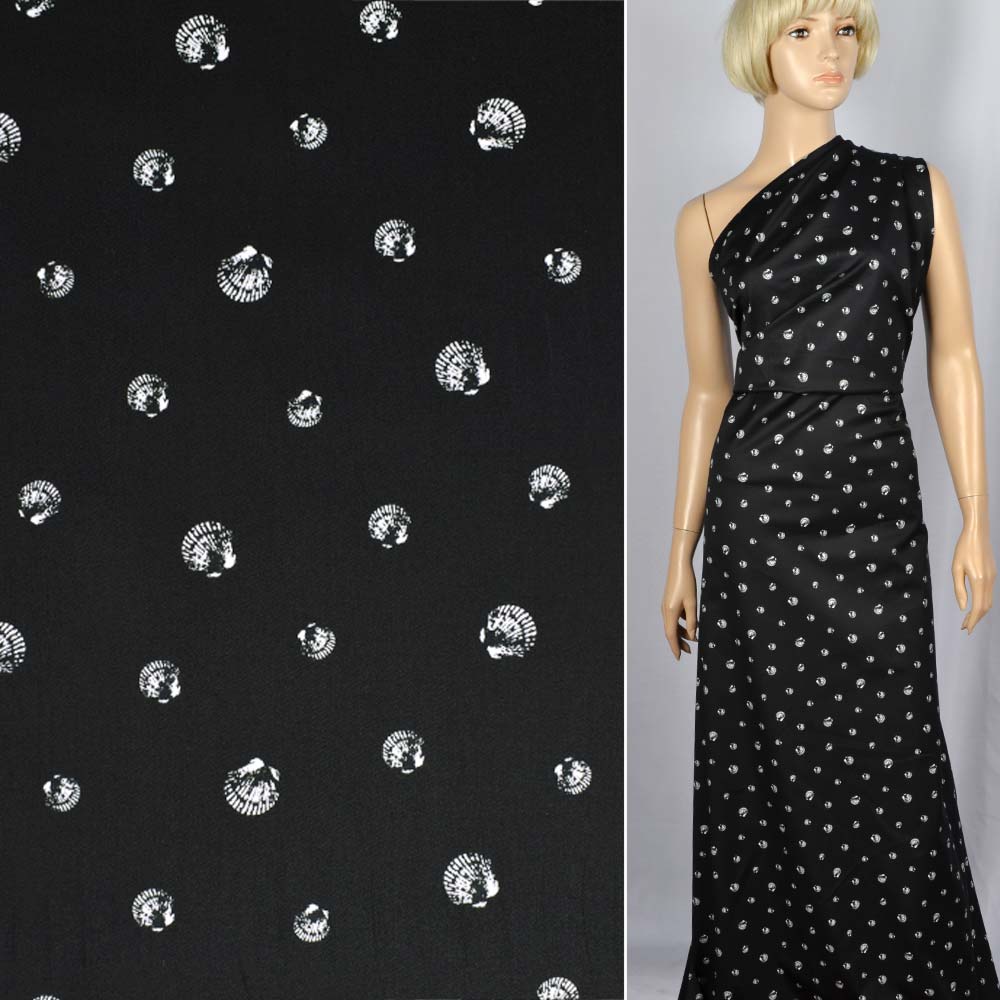 Котон стрейч "Apanage" чорний в білі черепашки ш.140 купить в розницу и оптом