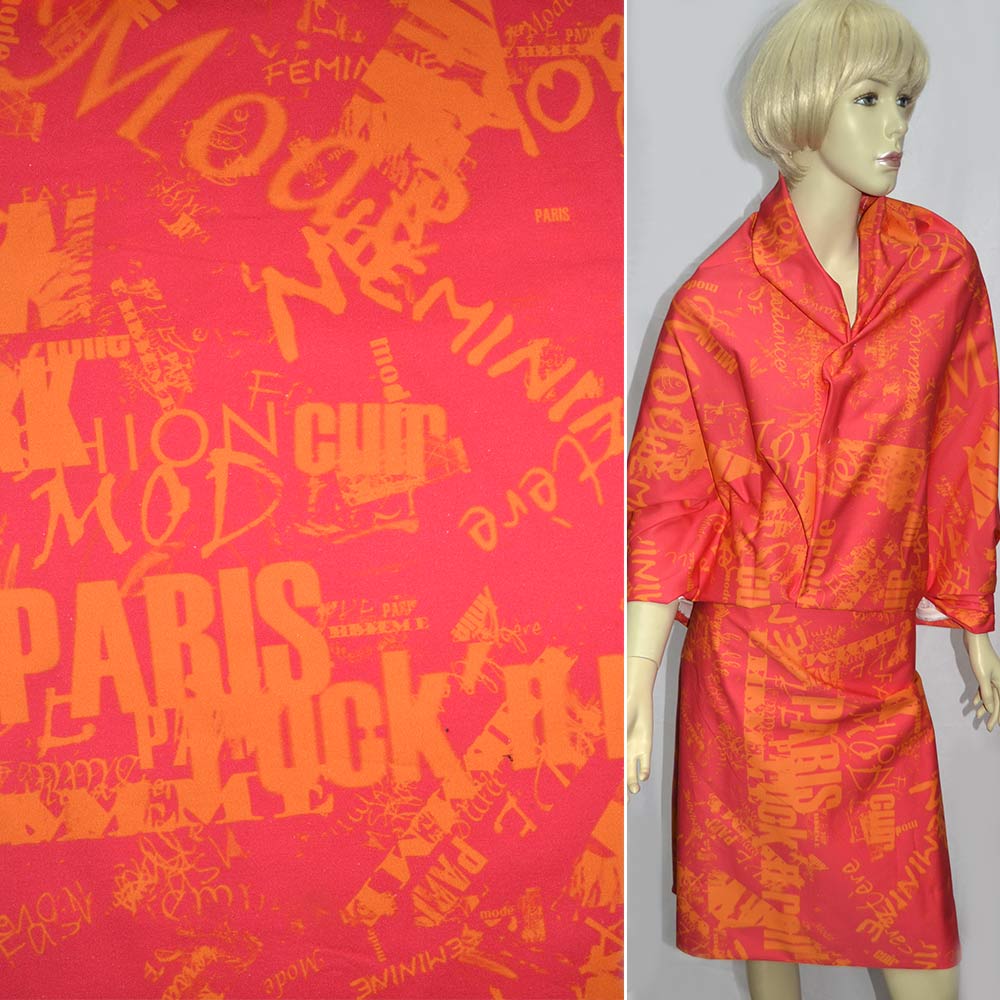 Котон стрейч червоно-помаранчевий "газета" ш.143 купить в розницу и оптом