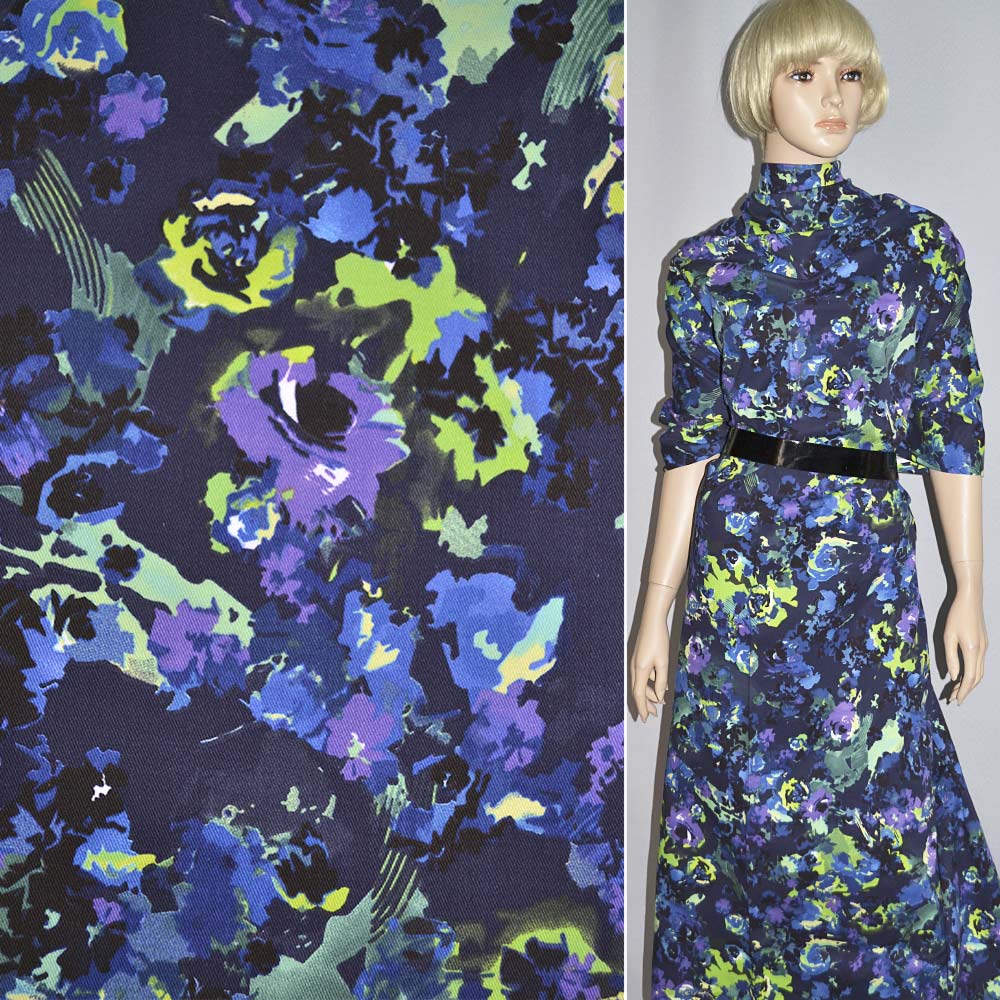 Котон стрейч синій темний з фіолетово-салатовим кольорами ш.140 купить в розницу и оптом