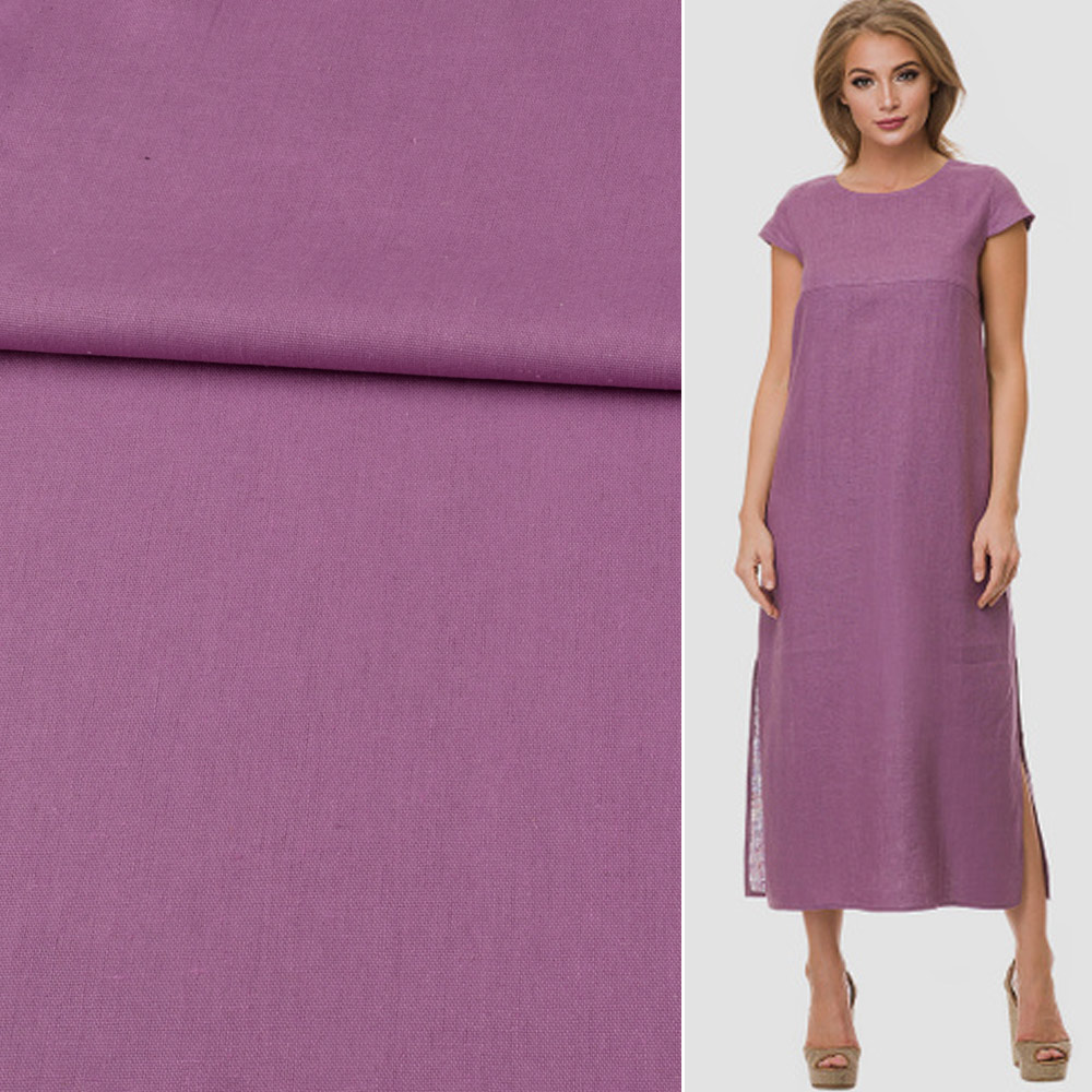 Льон ліловий ш.135. Склад тканини: Льон-70, Бавовна-30. Щільність тканини 170 г/м.кв. Країна виробник: Південна Корея. Льон – матеріал середньої щільності, натурального походження, використовується для пошиття літніх виробів. Гігроскопічний, повітропроникний, міцний, стійкий до носіння, прання та прасування. Поверхня тканини матова, а завдяки бавовні у складі, тактильно дуже м'яка та приємна на дотик, непрозора. У складках та складаннях не має значного формоутворення, лягає м'яко та пластично. Підходить для пошиття брючних костюмів вільного крою, піджаків, суконь, спідниць, сарафанів, сорочок.Дякуємо за ваш вибір.