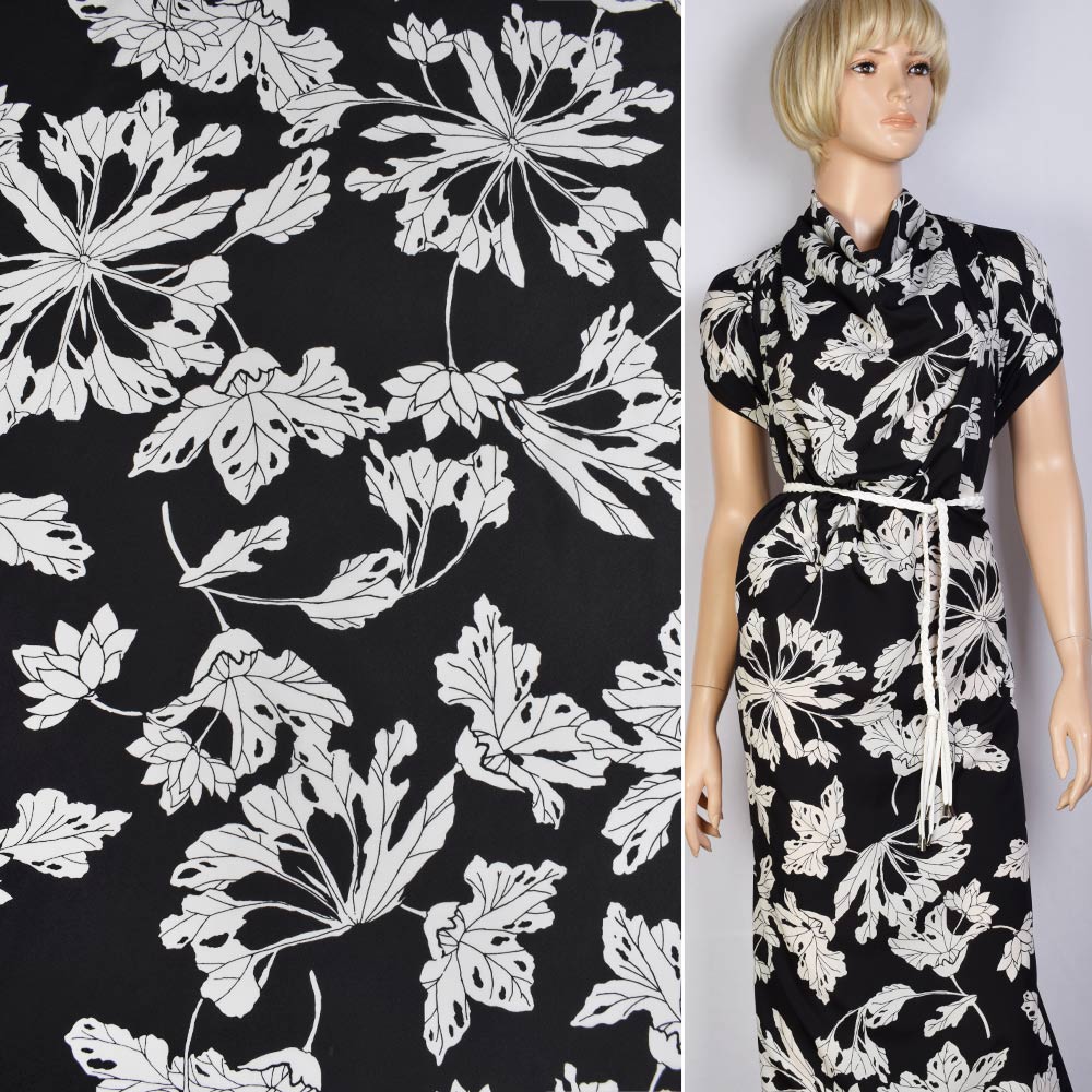 Поплін чорний в білі великі квіти ш.147 купить в розницу и оптом