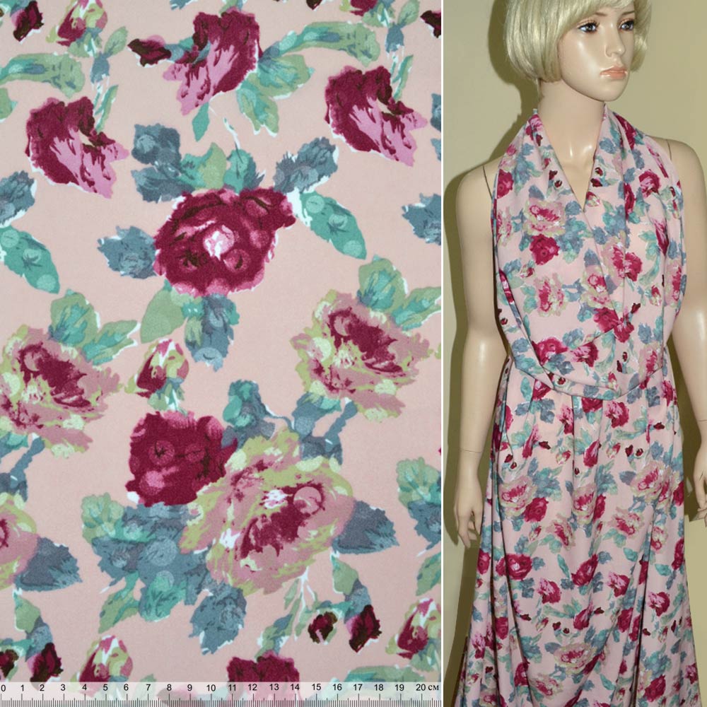 Поплін Діллон рожевий з бордовими квітами ш.150 купить в розницу и оптом