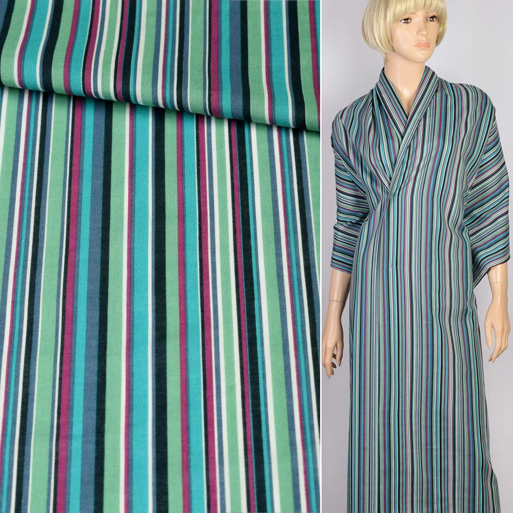 Батист в смужку зелену, бірюзову, фіолетову, чорну, ш.120. Склад тканини: Бавовна-100. Щільність тканини 77 г/м.кв. Країна виробник: Німеччина. Сорочкова тканина – тонка, має гладку поверхню. Якісний склад матеріалу забезпечує гігроскопічність, практичність та функціональність. Завдяки натуральним волокнам, тканина не викликає алергічних реакцій та тривалий час зберігає свій первісний вигляд. Тканина якісна, приємна до тіла, трохи тримає форму, добре драпірується.Дякуємо за ваш вибір.