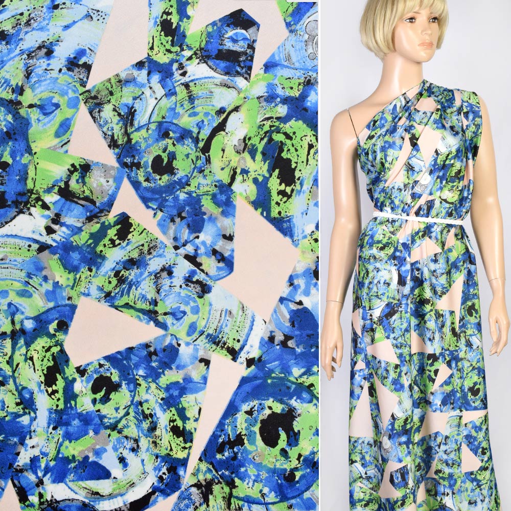 Шовк японський білий в синьо-зелений абстрактний малюнок, ш.150 купить в розницу и оптом