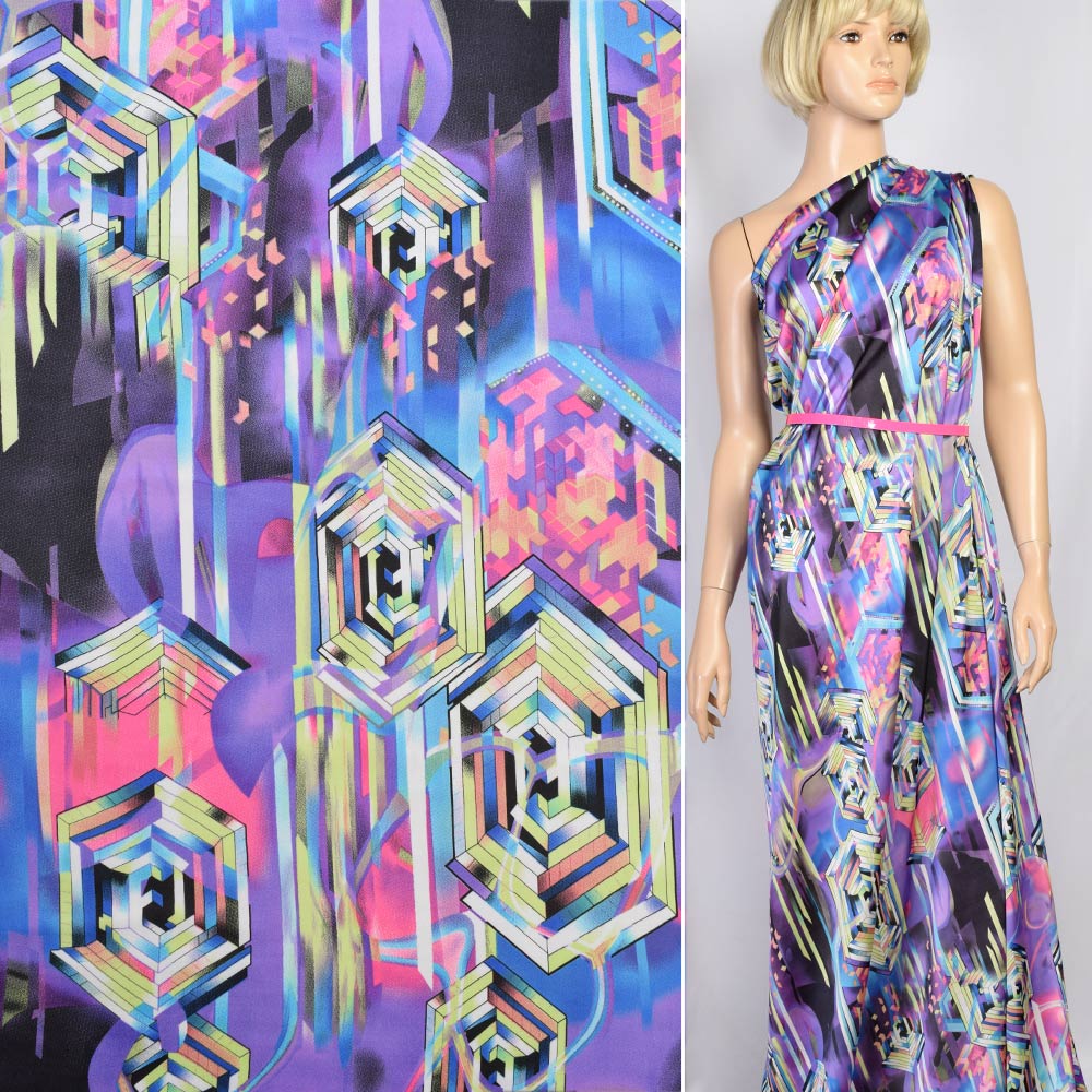 Шовк японський фіолетовий в салатово-бузковий абстрактний малюнок, ш.150 купить в розницу и оптом