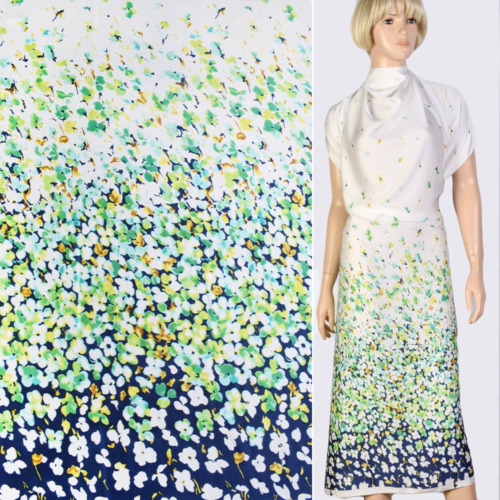 Шовк японський стрейч купон біло-зелено-синій в квіти ш.147 купить в розницу и оптом